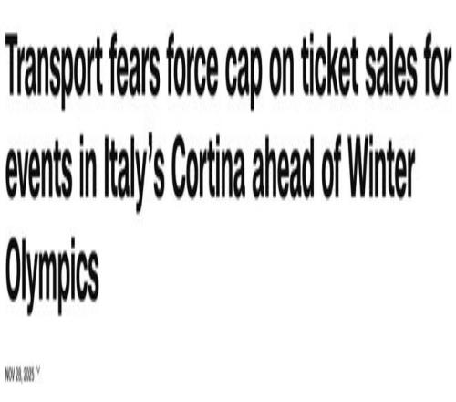 纜車能不能趕在開幕前投放使用還存疑。為了避免交通癱瘓,主辦方無奈限制了科爾蒂納地區(qū)賽事的門票數(shù)量,尤其縮減了女子高山滑雪賽事的可售門票數(shù)。